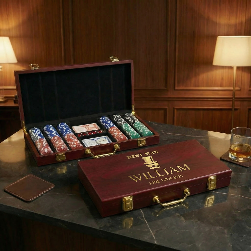 Best Man Top Hat Personalized Poker Set – Groomsmen Gift