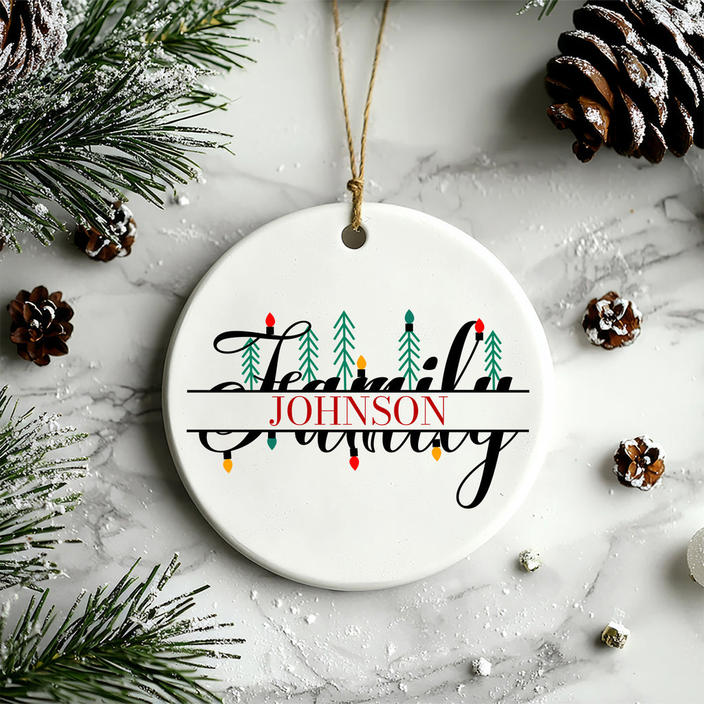Family Name Ornament with Christmas Lights | Personalized Holiday Ornament