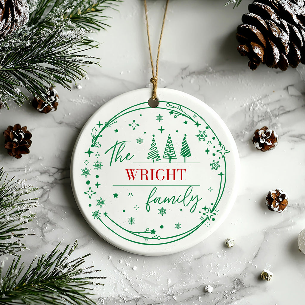 Green Wreath Family Name Ornament | Personalized Christmas Ornament