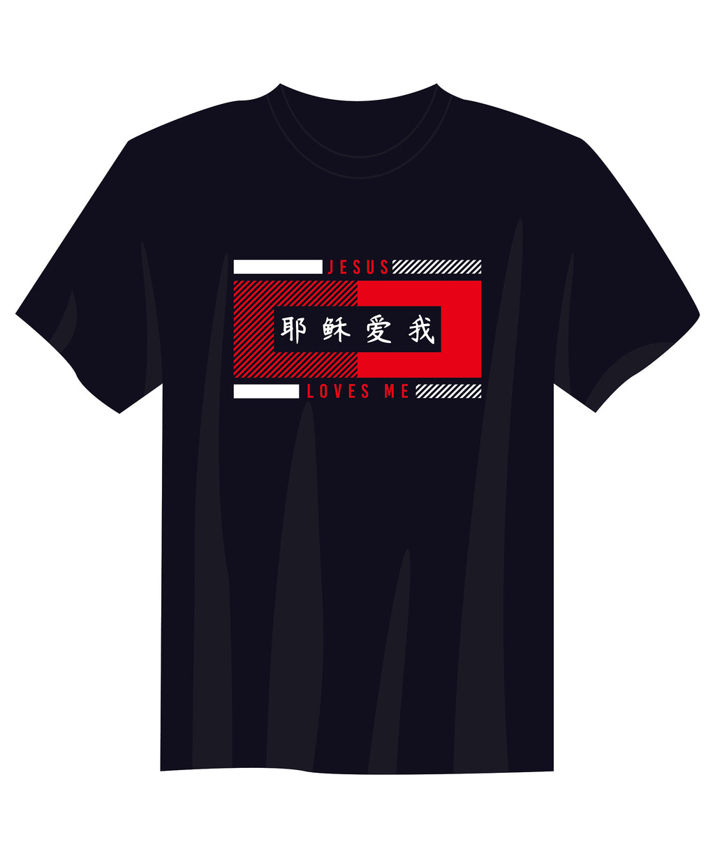 Express your faith boldly with this striking “Jesus Loves Me” t-shirt, featuring the phrase written in Chinese characters (耶稣爱我) across a modern, high-contrast design. Whether you’re fluent or simply embracing the global message of God’s love, this shirt is a powerful conversation starter.