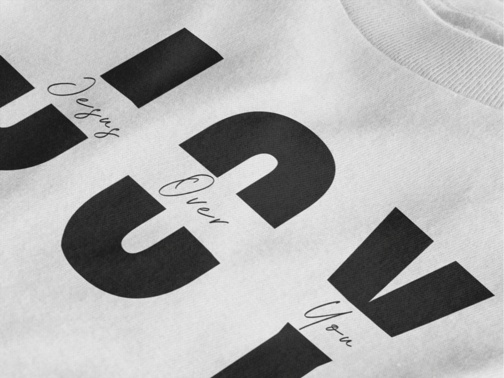 Let joy speak for itself with this bold JOY shirt, featuring a modern typographic design that reminds you to put Jesus Over You. Whether you're heading to service, running errands, or gifting a loved one, this tee offers both comfort and a powerful message.