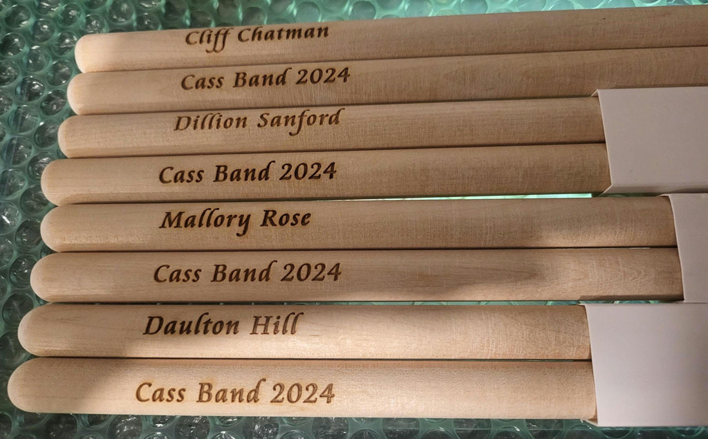 Buyers have the option to choose a message for each drum stick and select the font they want used.